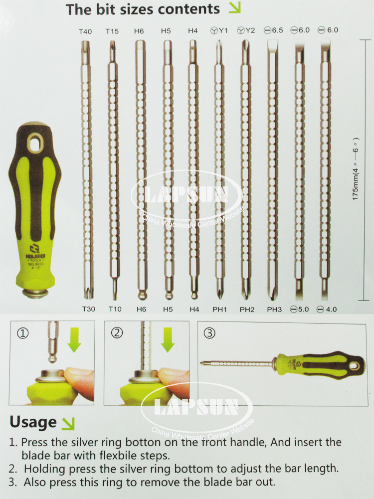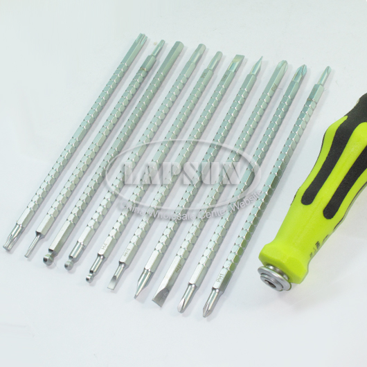 - Precision screw driver set includes 10 insert bits(20 tips), 1pc Plastic Handle