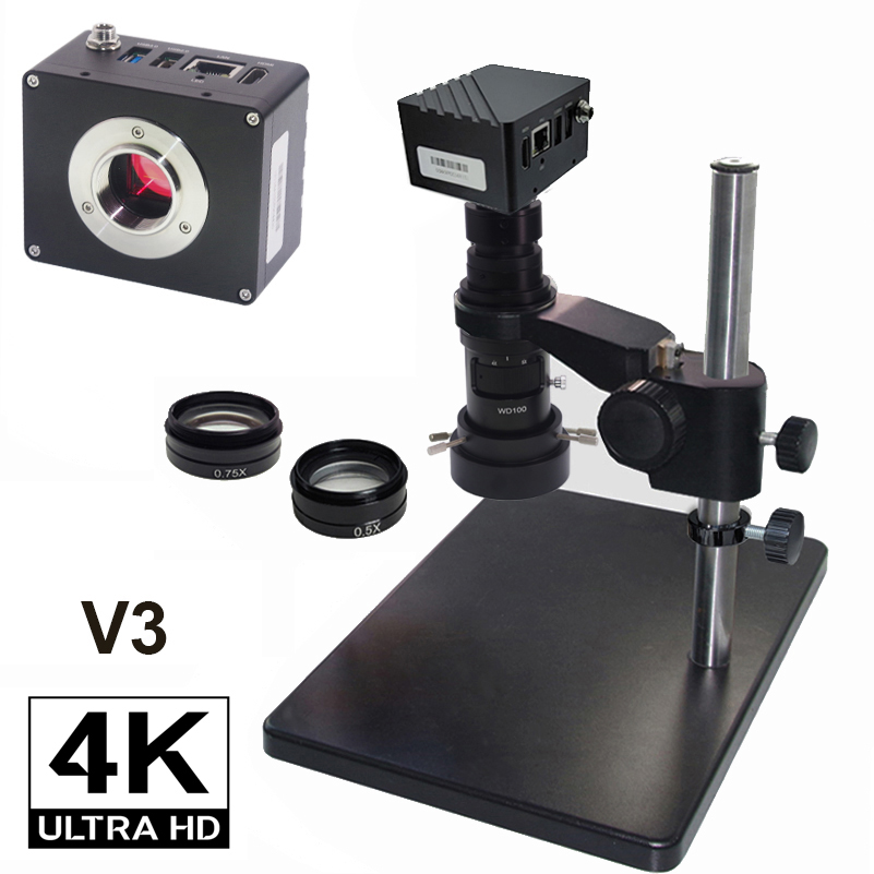 2023 4K IMX334 V3 60FPS HDMI USB LAN Industry Camera Microscope Set WD100 0.75X Barlow Lens for Mobile Soldering