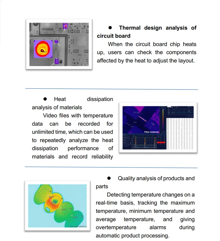 • Full radiometric thermal video can be observed in real time, or full radiometric thermal video can be recorded for offline analysis