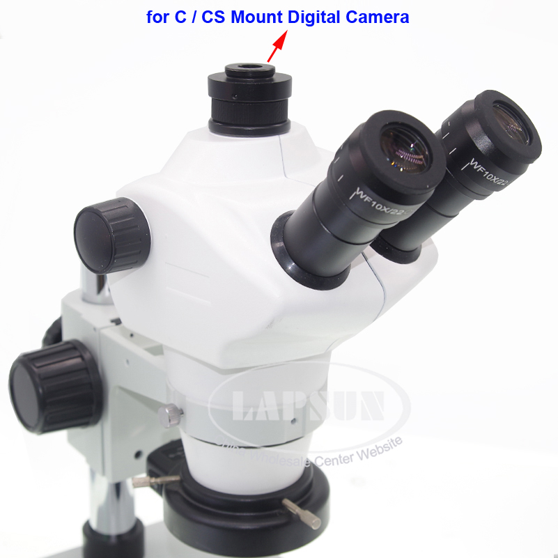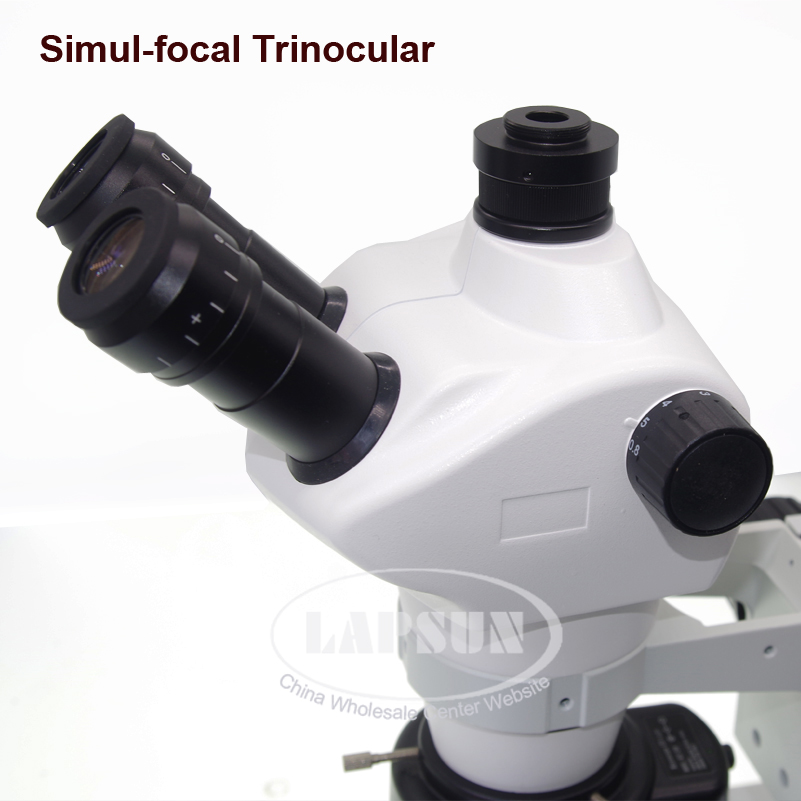 This precision instrument is a high quality Simul-focal 8X-50X trinocular stereo zoom microscope, and features extreme widefield optics,With 144 LED Ring light, and a convenient track stand for easy focusing. Optically, the large zoom magnification range of 8x-50x maintains focus at a 4.5" (115mm) working distance. This confocal feature provides ample room for various sample sizes, and with its 360 degree swiveling head and 45 degree ocular tubes, the ultimate experience in comfort can be achieved to your liking. For illumination, a 144 LEDs Ring Light , providing ample lighting. These features all add up to a great microscope for industrial, educational, and professional applications for research labs, hospitals, schools, veterinary offices, and more.